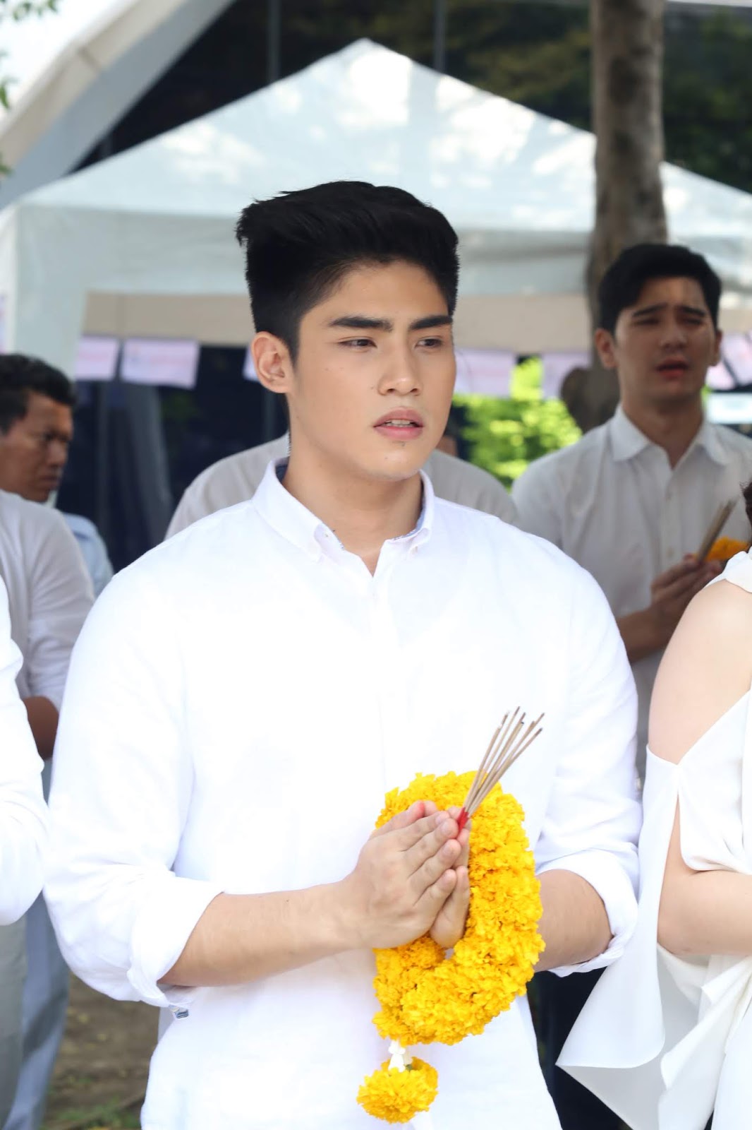 ควงคู่มากับนางเอกยีน ที่งานนี้ต้องยกนิ้วให้ เพราะถึงจะขาเจ็บจนบวม จากอุบัติเหตุกลางกองที่เดินเตะน็อตขาเครนตั้งกล้องจนเลือดอาบกลางกองซีรี่ส์ แต่ก็ยังสปิริตแรงมาร่วมงานได้ เสริมด้วยทัพด้วยนักแสดงมากฝีมือที่ตบเท้ามาร่วมพิธีบวงสรวงกันคับคั่ง